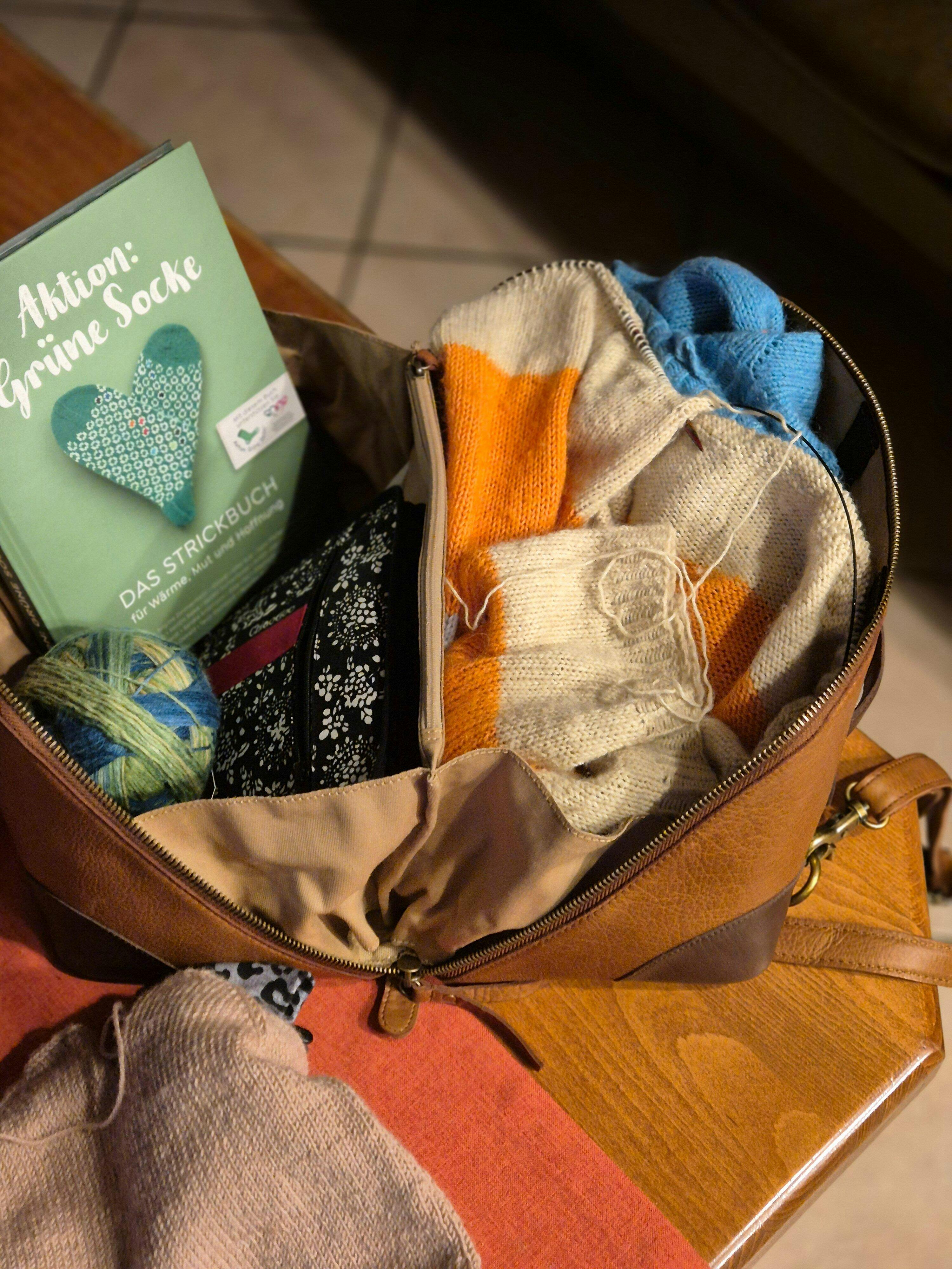 Eine wirklich praktische und super schön verarbeitete Stricktasche- sie begleitet mich so oft wie möglich 😉
